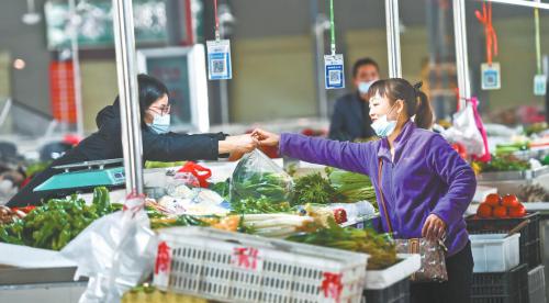 市民在問津菜場菜攤買菜。 長江日報記者 許魏巍 攝