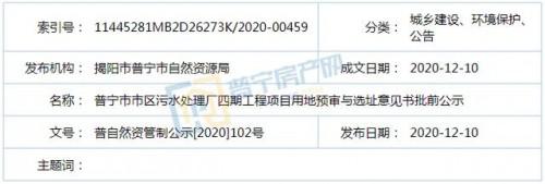 近日,依照《廣東省城鄉(xiāng)規(guī)劃條例》第二十九條規(guī)定,普寧市自然資源局發(fā)布了普寧市市區(qū)污水處理廠四期工程項(xiàng)目用地預(yù)審與選址意見(jiàn)書(shū)批前公示,具體內(nèi)容如下: