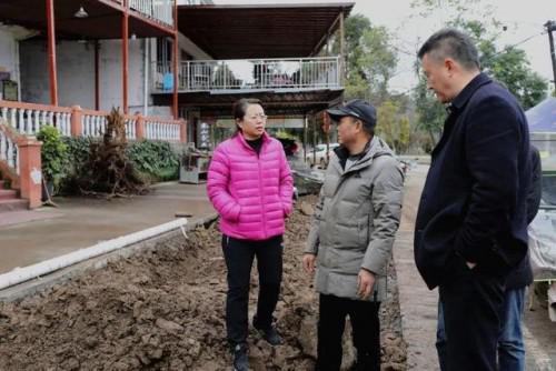 宋莉(右2)現場了解截污干管鋪設情況